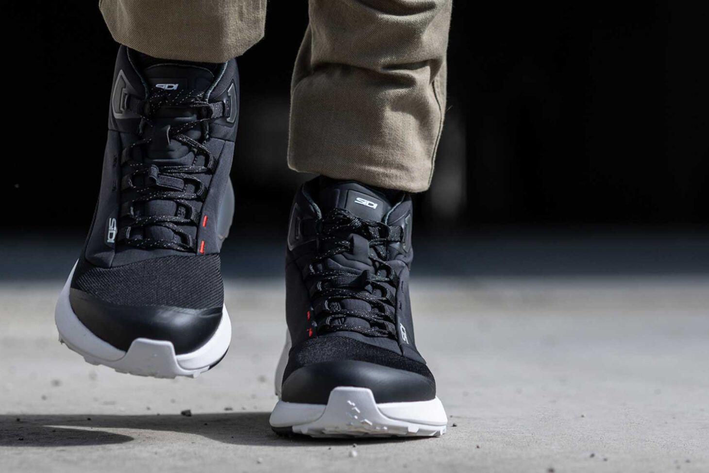Walk on air. The shoe prepared for everything. Lightweight and hyper-cushioned for long walks, protected for motorcycle riding and Gore-tex membrane for elements protection with greater comfort indoor.